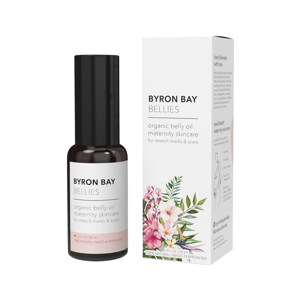 Byron Bay Bellies Belly Oil is a 100% Organic derived skincare product designed to help prevent and reduce stretch marks as well as nourish your skin. Made in Byron Bay, Australia from organic ingredients.