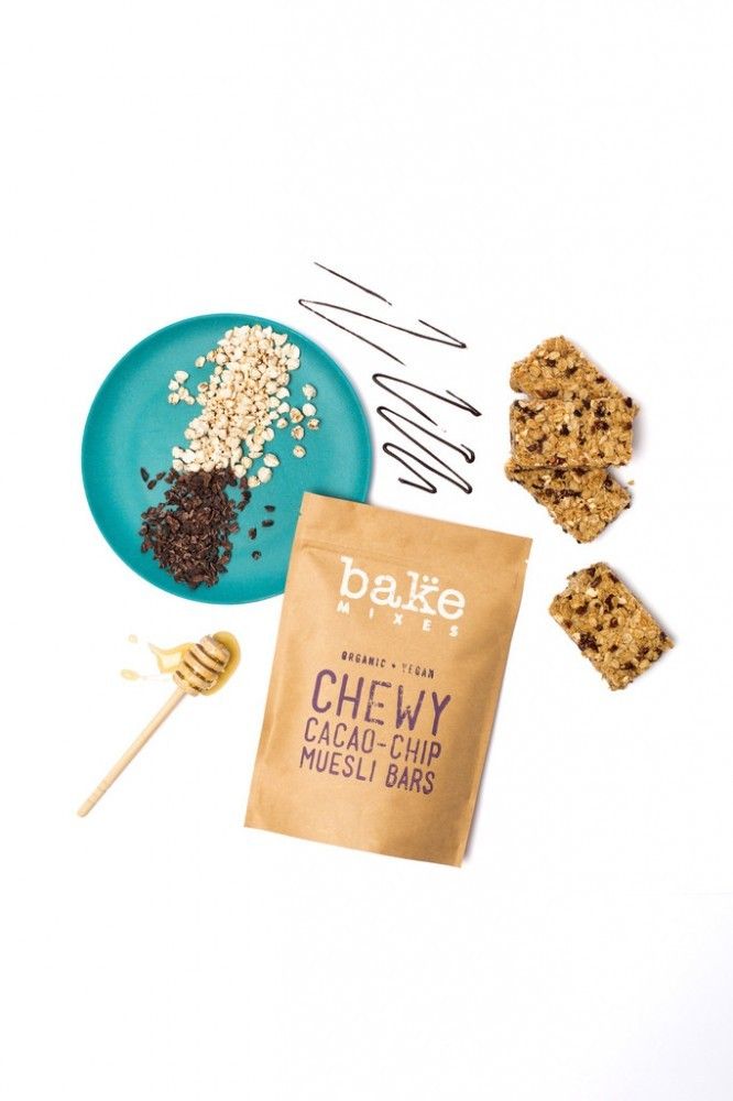 Made from organic, whole food ingredients including organic rolled oats, puffed buckwheat and no nasties, these Bake Mixes Cacao-Chip Muesli Bars will love you from the inside out.