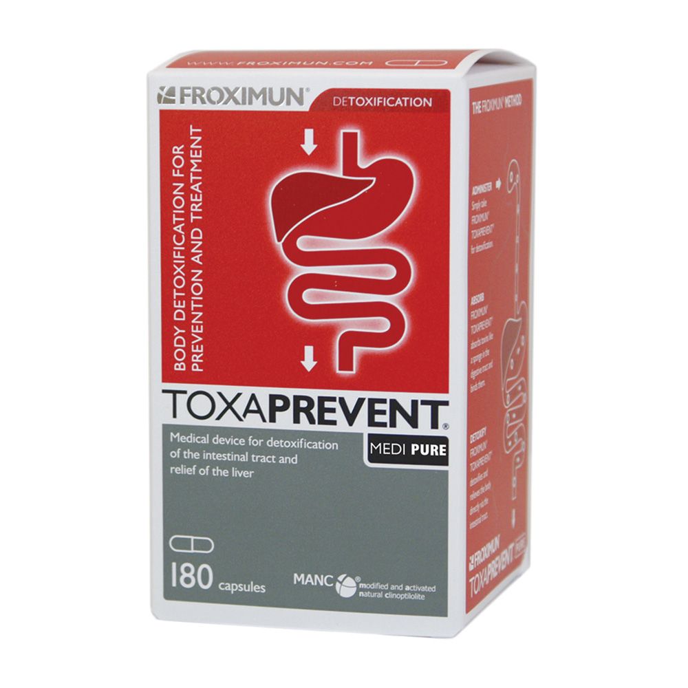 - TOXAPREVENT® strengthens the intestinal wall barrier by effectively removing toxins and intestinal irritants from the intestinal tract.