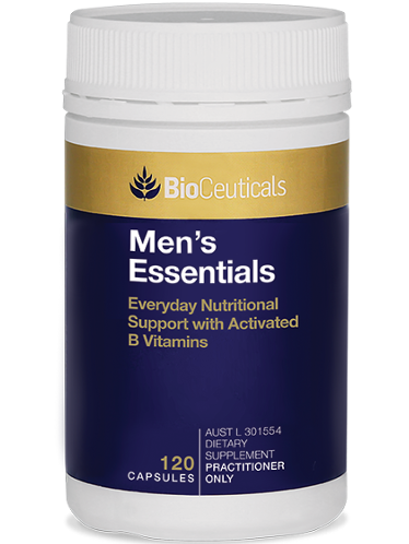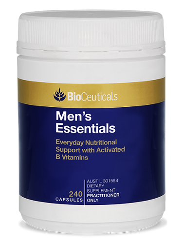 BioCeuticals Men's Essentials provides a comprehensive blend of vitamins, minerals and active B vitamins and supports general health and wellbeing. Vitamins B2, B3, B5, B6 and B12 relieve stress and fatigue. Vitamin C, D and Zinc support healthy immune system function. Selenium supports sperm production, and zinc maintains testosterone levels and cognitive function.