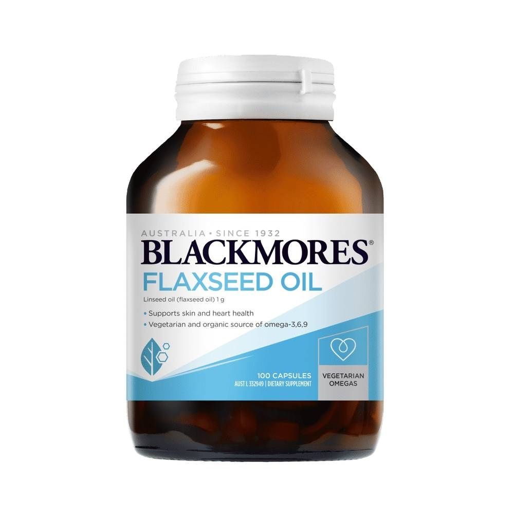 Blackmores Flaxseed Oil is a vegetarian and organic source of omega-3, 6, and 9 essential fatty acids that support skin and heart health.