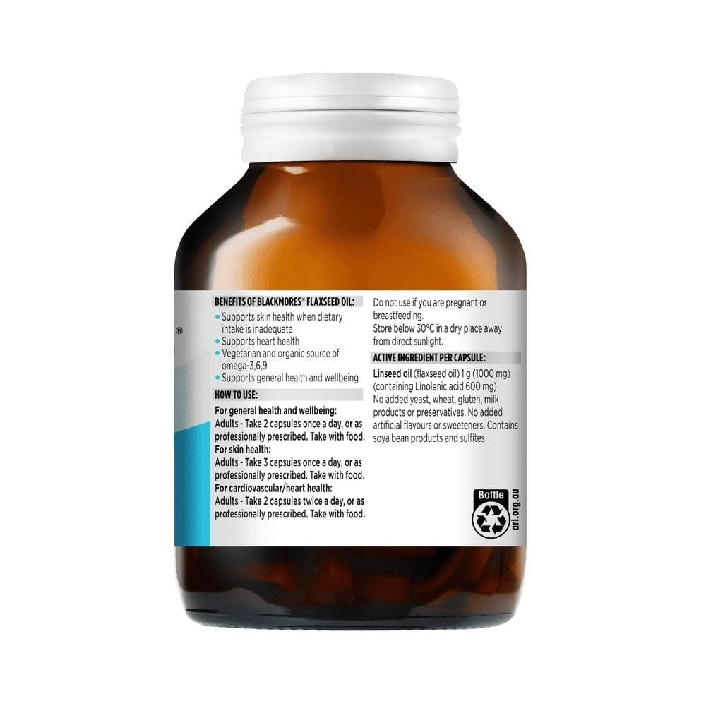 Blackmores Flaxseed Oil is a vegetarian and organic source of omega-3, 6, and 9 essential fatty acids. Always read the label and follow the directions for use. Read the warnings below before purchase. Read more
