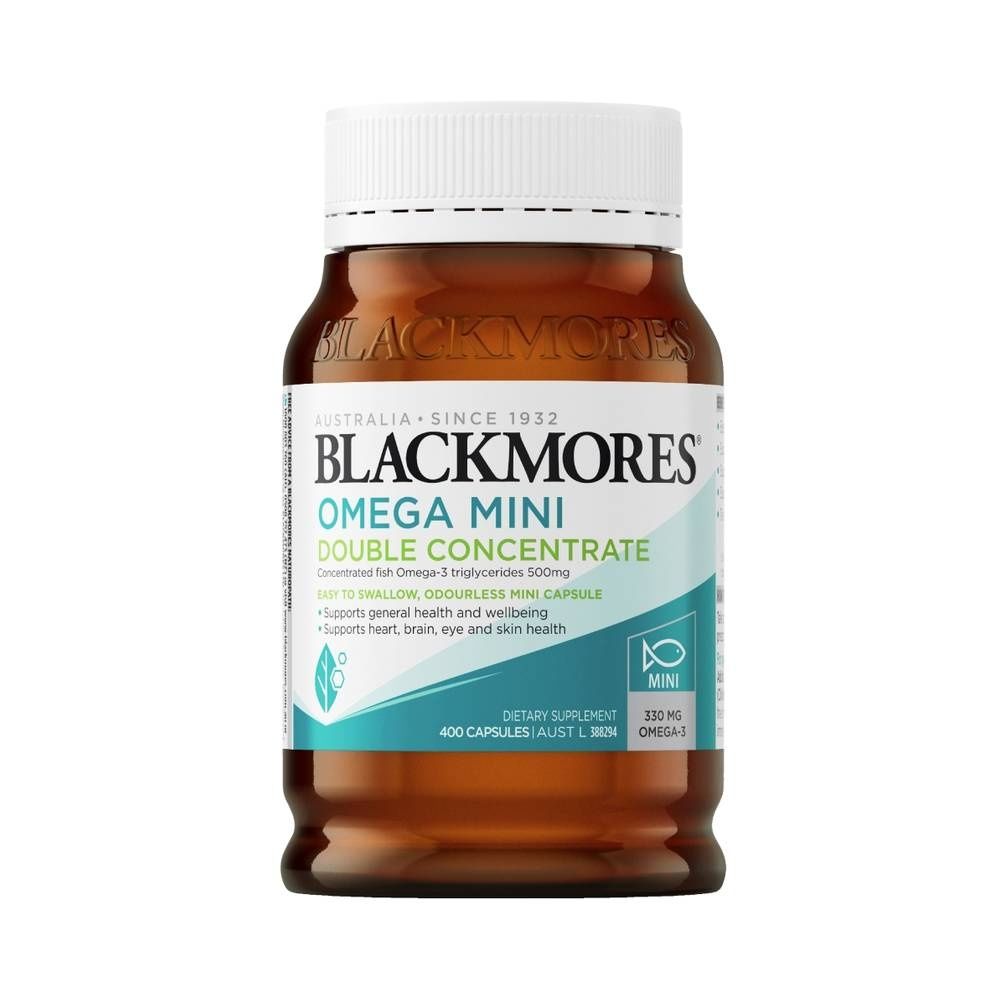 Blackmores Omega Mini Double Concentrate supports the health of your heart, skin*, eyes and brain. This is a high-quality, concentrated odourless fish oil that provides the same amount of omega-3 per capsule as our standard fish oil 1000 capsule** in a conveniently small, easy-to-swallow mini-sized capsule.**