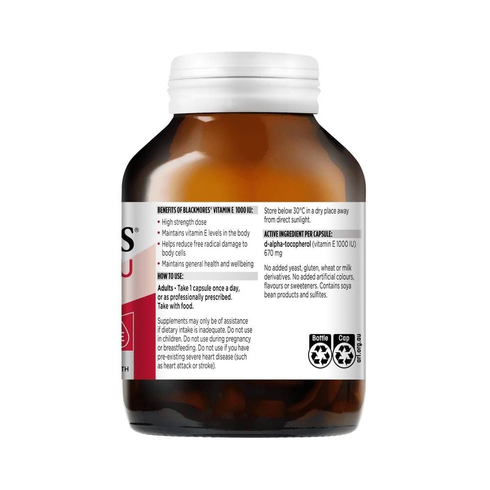 Blackmores Vitamin E 1000 IU contains a super strength one-a-day dose of a vitamin E. It maintains vitamin E levels in the body and helps reduce free radical damage to body cells.