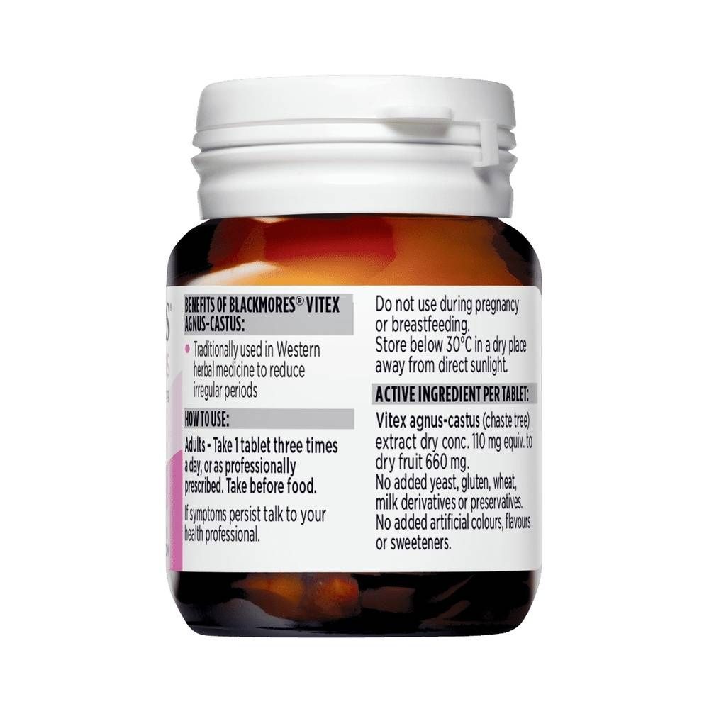 Blackmores Vitex Agnus-Castus was traditionally used in Western herbal medicine to help stabilise menstrual cycle irregularity, as well as reducing the symptoms of PMT. Always read the label and follow the directions for use. Read the warnings below before purchase.