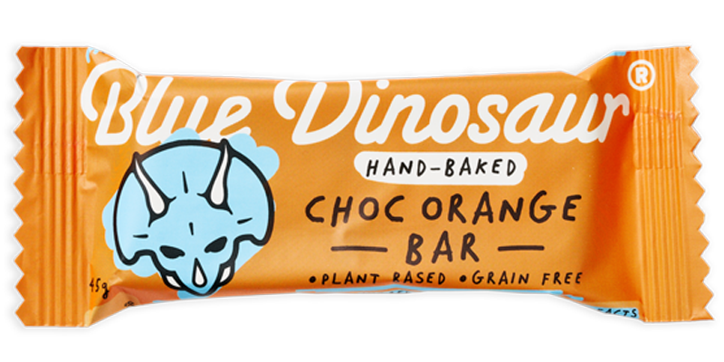 Blue Dinosaur Choc Orange Paleo Bar - Rich, dark Organic Cacao combined with Organic Orange Oil creates a bar that’s as suited to a classy evening by the fire in Monaco as it is a sentimental snack at the movies.