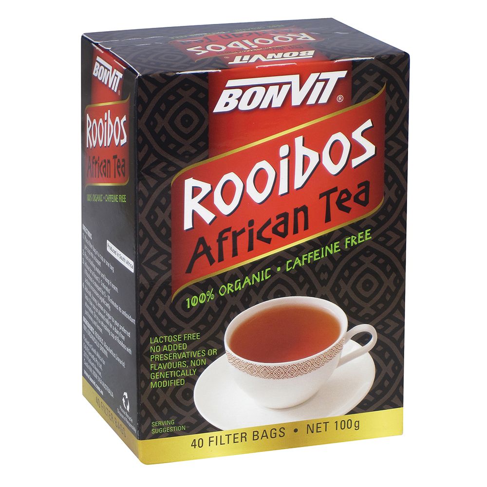 Enjoy a healthy, delicious cup of Bonvit Rooibos African Tea anytime, day or night.