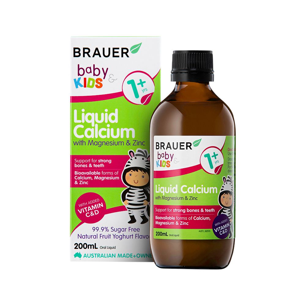 Brauer Baby & Kids Liquid Calcium with Magnesium & Zinc has been specifically developed with bioavailable forms of calcium, magnesium and zinc to help support the development of strong bones and teeth. With the added benefits of vitamin C and vitamin D, this product is suitable from 12 months of age and comes in a naturally delicious fruit yoghurt flavour - and it's 99.9% sugar free!