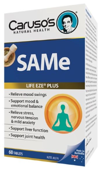 Caruso’s SAMe Life EZE Plus is a nutritional and vitamin complex designed to help in the management of mood swings. Caruso’s Life EZE Plus helps to control stress and mild anxiety and support nervous tension. It is also designed to help support liver function and promote a healthy liver, and to help sufferers of pain and discomfort associated with osteoarthritis.