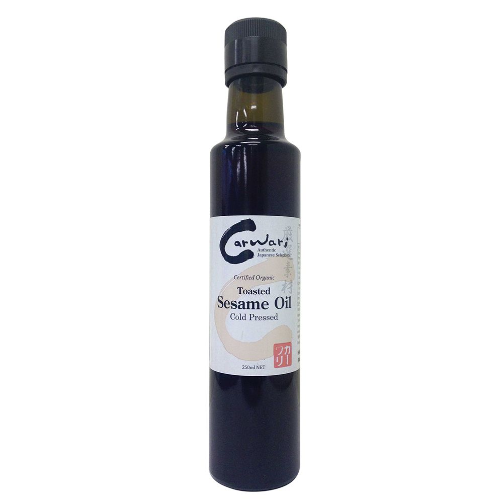 Carwari Organic Toasted Sesame Oil has a stronger flavour and aroma and is a darker colour. Certified organic roasted unhulled white sesame seeds are cold pressed and the oil extracted.