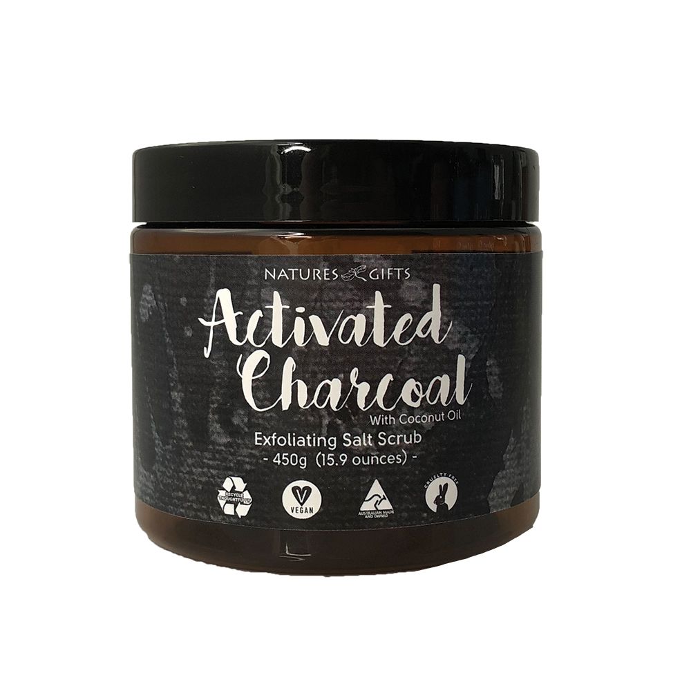 An exfoliating salt scrub with Activated Charcoal and Coconut Oil that may detox, cleanse and naturally moisturise your body. Combine bi-weekly use of this scrub with daily application of Activated Charcoal Moisturising Cleanser for a detoxifying skin care routine.