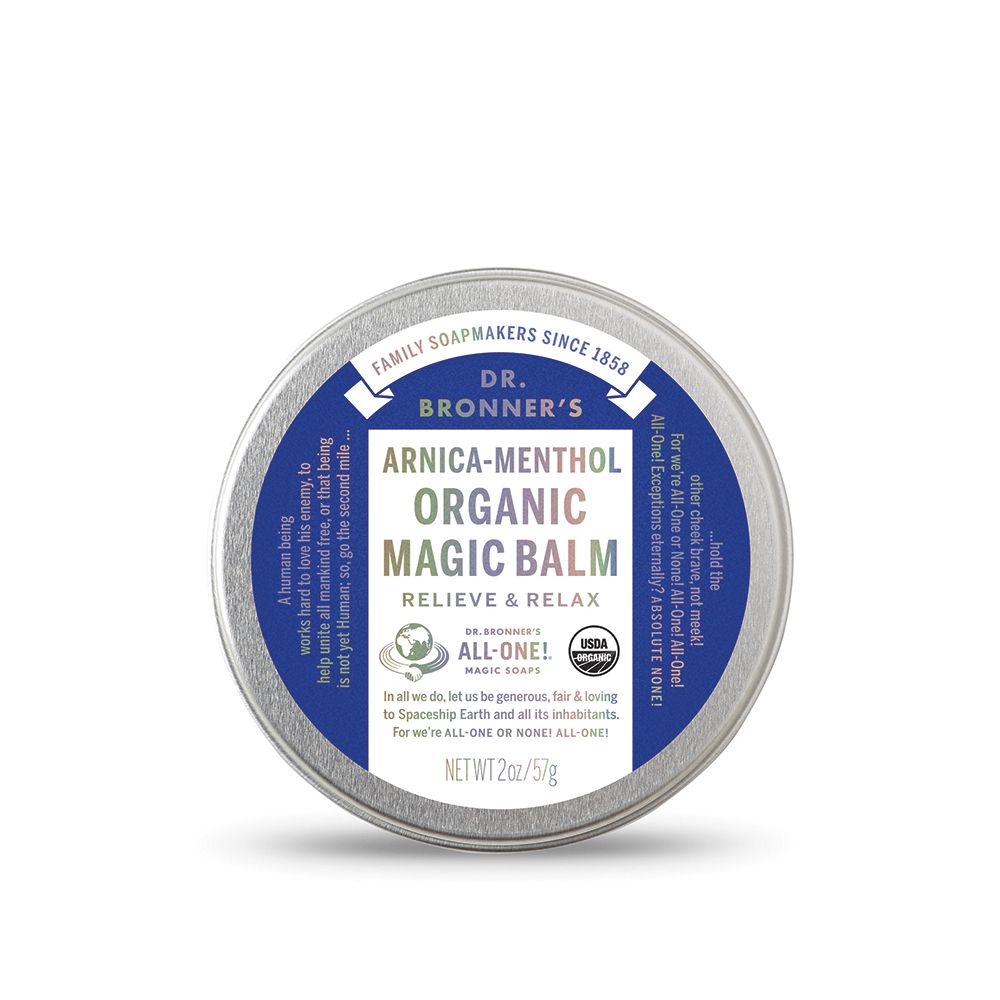 Dr. Bronner’s Arnica-Menthol Organic Magic Balm helps cool and soothe sore muscles and achy joints with a potent blend of arnica, camphor, menthol and peppermint oils. Our base of organic beeswax and organic oils – avocado, coconut, olive, jojoba and hemp – nourish and moisturise skin with no synthetic ingredients – none!