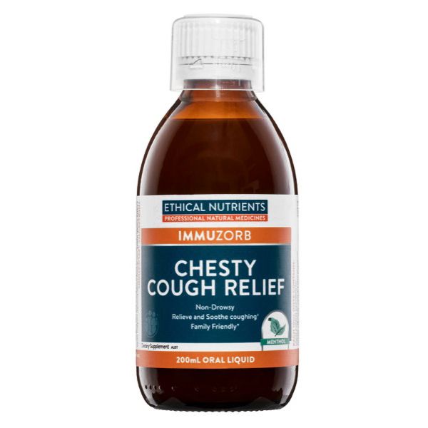 Ethical Nutrients IMMUZORB Chesty Cough Relief contains herbs traditionally used in Western herbal medicine that may help to relieve and soothe coughing.