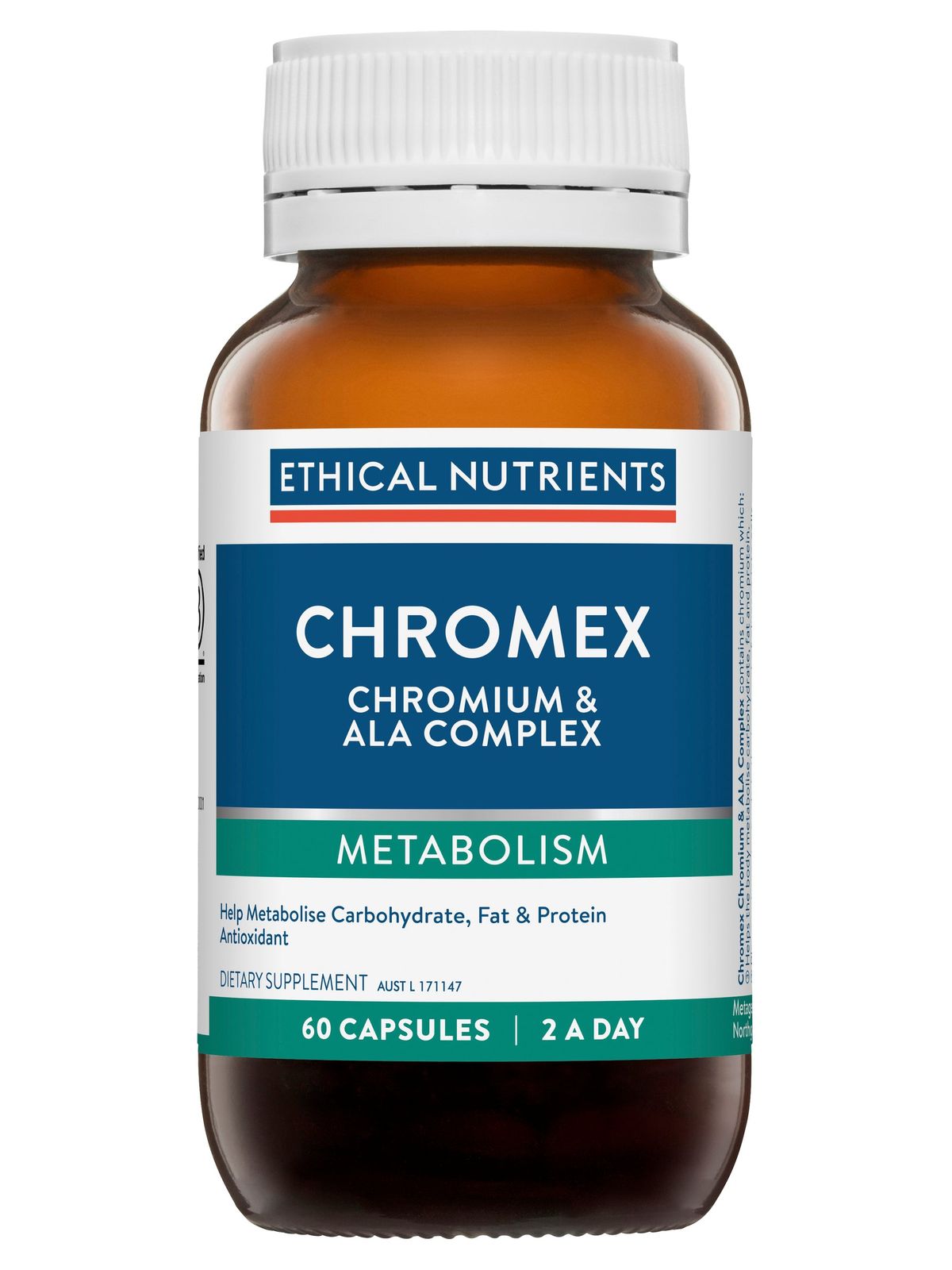 Ethical Nutrients Chromex helps metabolise carbohydrate, fat & protein. Plays an important role in the transport of glucose into cells. Read more
