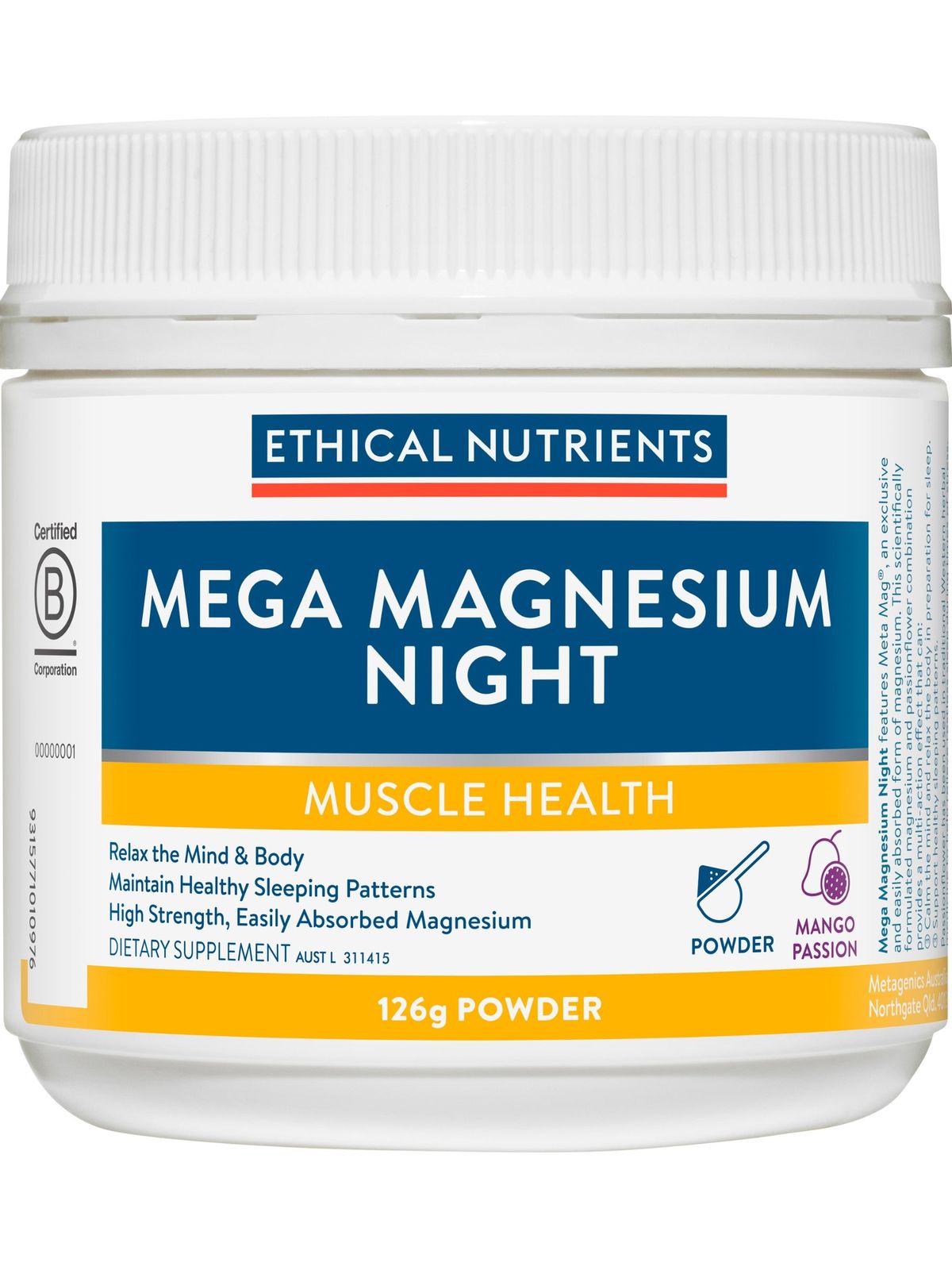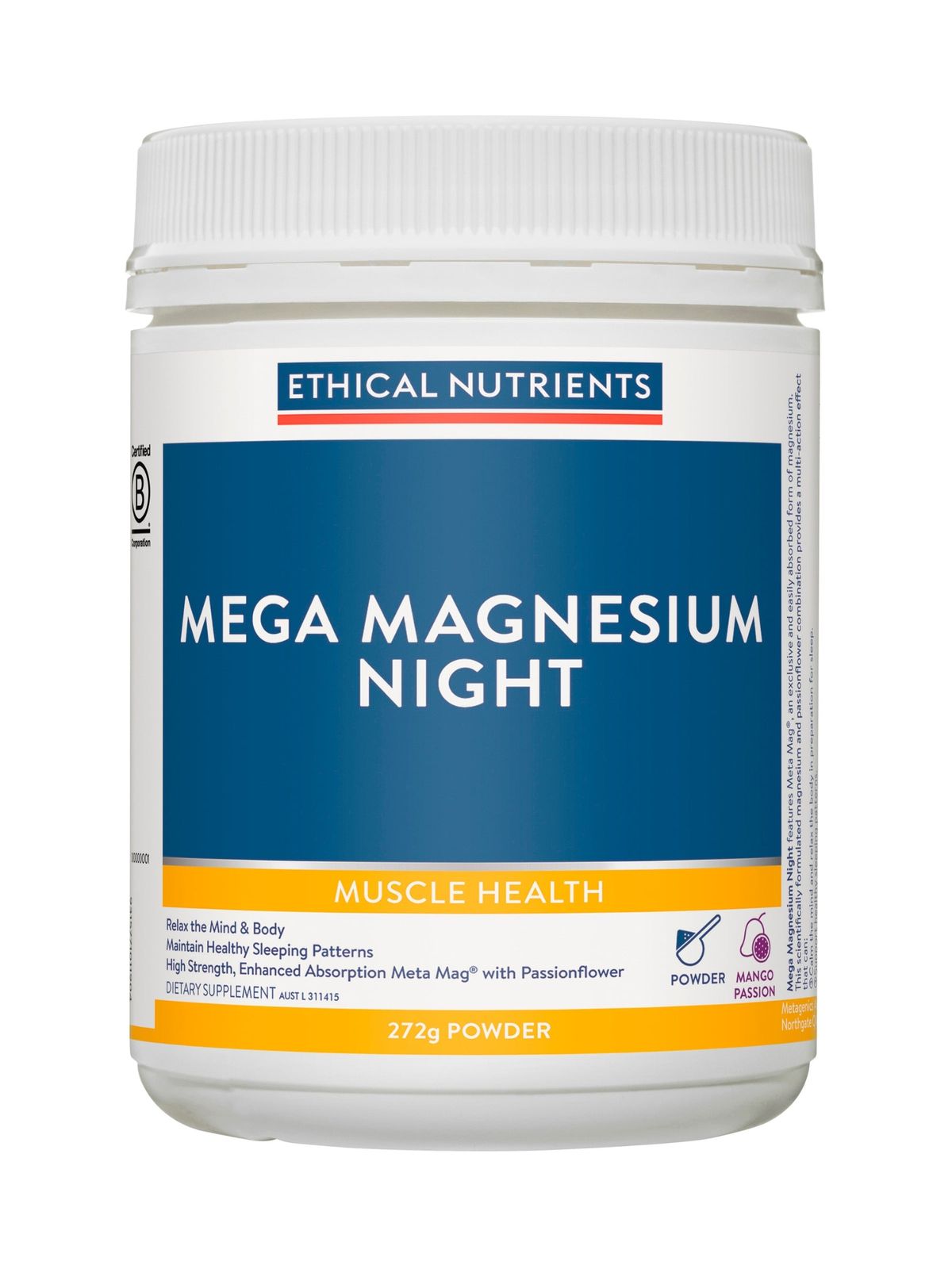 It can be difficult to relax at the end of a long day when your mind is racing, and your body is tense. Ethical Nutrients Mega Magnesium Night has been meticulously crafted to calm the mind and relax your muscles to prepare you for a good night’s sleep. Formulated with high strength, easily absorbed magnesium and passionflower.