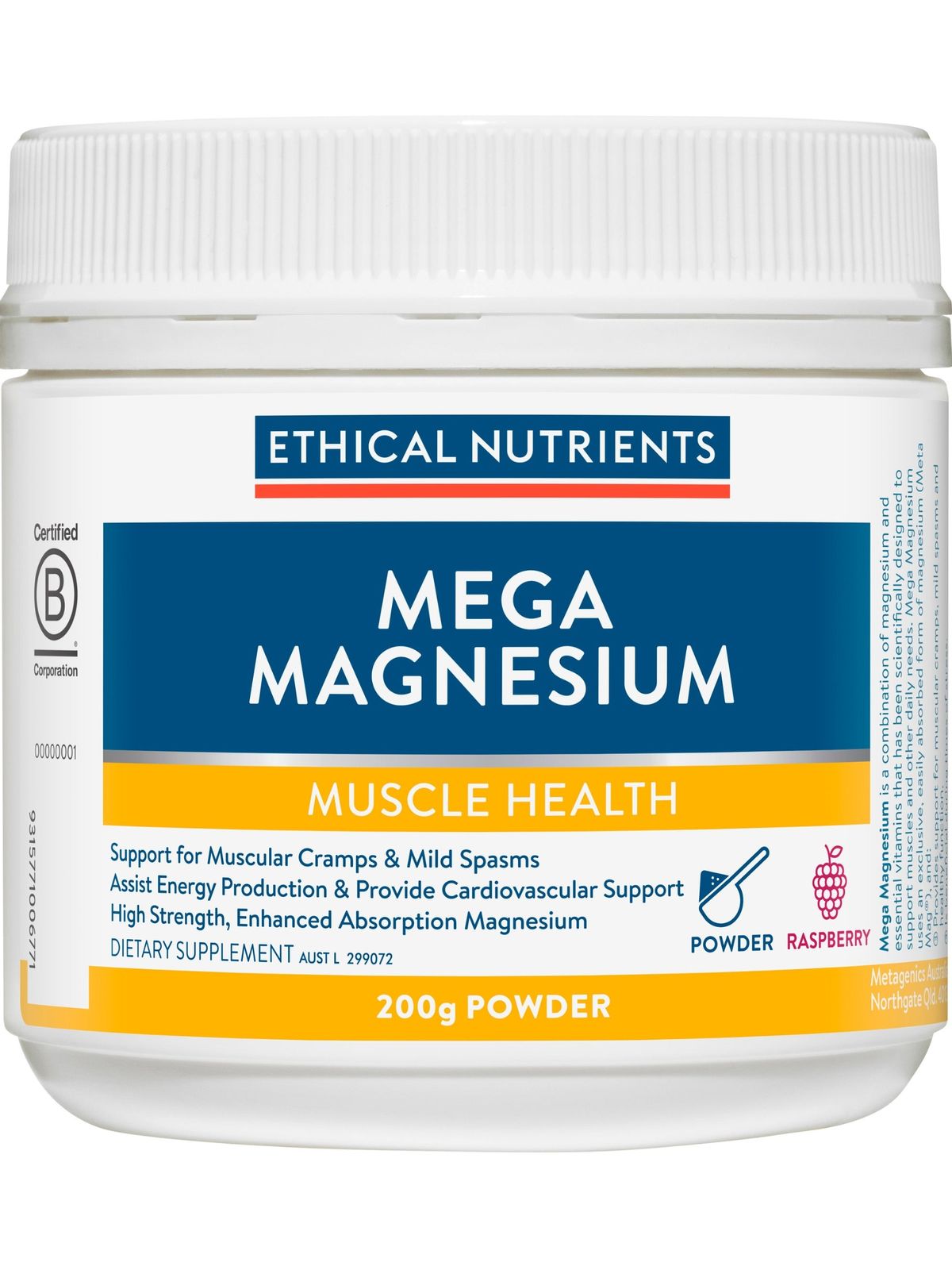Ethical Nutrients Mega Magnesium Raspberry Powder is a combination of magnesium and essential vitamins that has been scientifically designed to support muscles and other daily needs.
