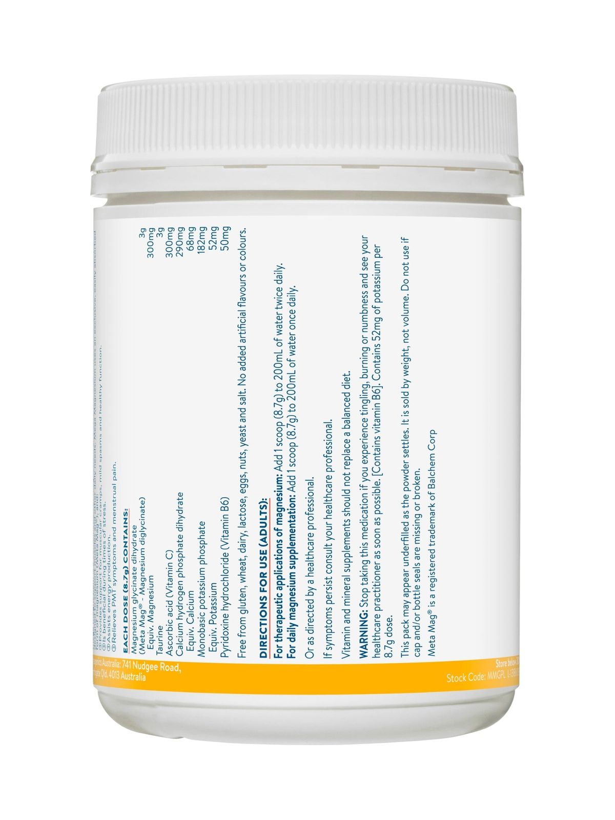 For daily magnesium supplementation: Add 1 scoop (8.7g) to 200mL of water once daily.