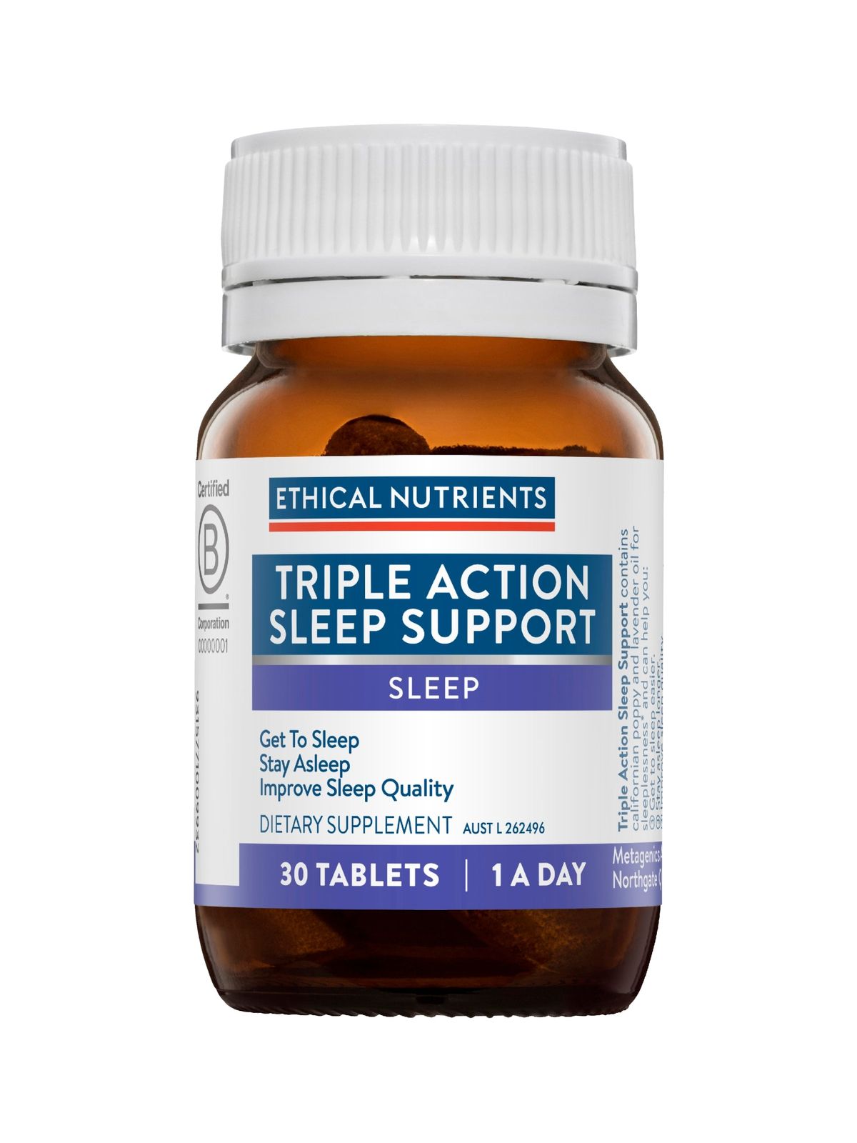 Ethical Nutrients Triple Action Sleep Support combines California poppy and lavender oil for a specialised sleep formula to help you get to sleep easier, stay asleep and improve sleep quality as traditionally used in Western herbal medicine.