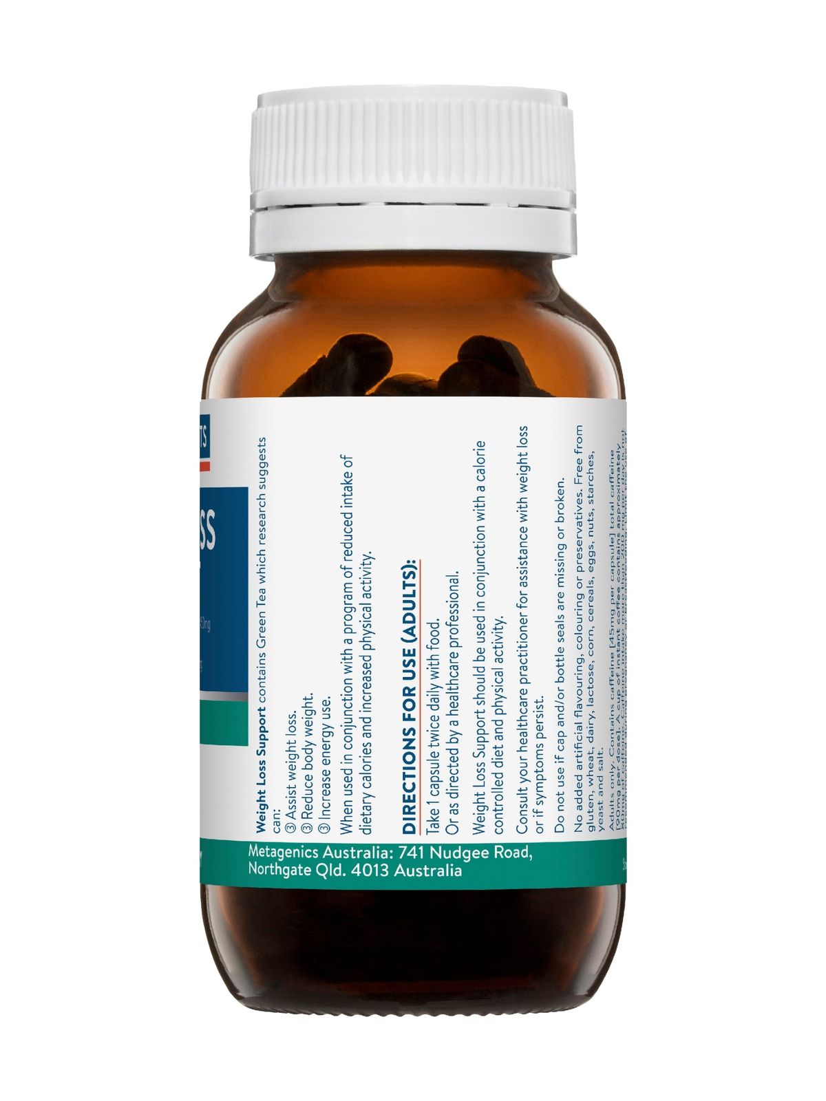 - Contains caffeine [45mg per capsule] total caffeine [90mg per dose]. A cup of instant coffee contains approximately 80mg of caffeine. Caffeine intake more than 200 mg per day is not recommended during pregnancy or breastfeeding. Limit the use of caffeine-containing products (including tea and coffee) when taking this product. Caffeine interacts with the liver enzyme CYP1A2. Consult your health professional before taking with other medicines. No added artificial flavouring, colouring or preservatives.