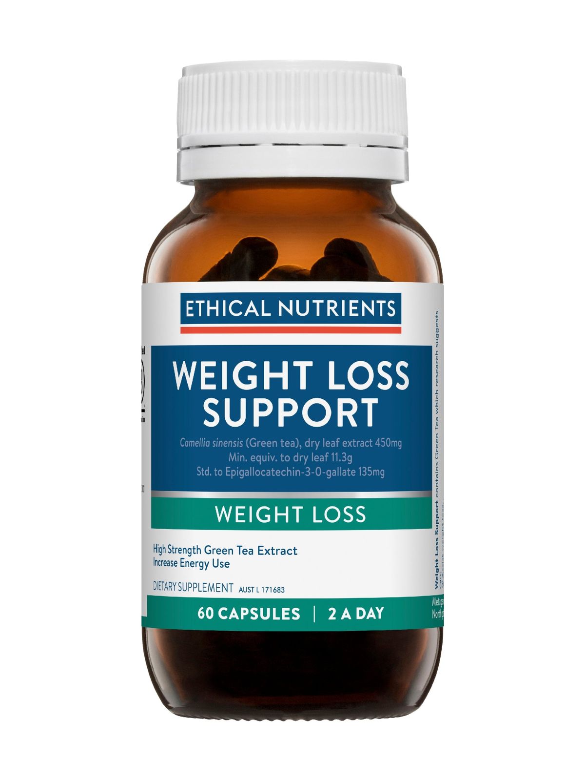Ethical Nutrients Weight Loss Support with high strength green tea extract which may assist in weight loss, reduce body weight and waist size. Read more