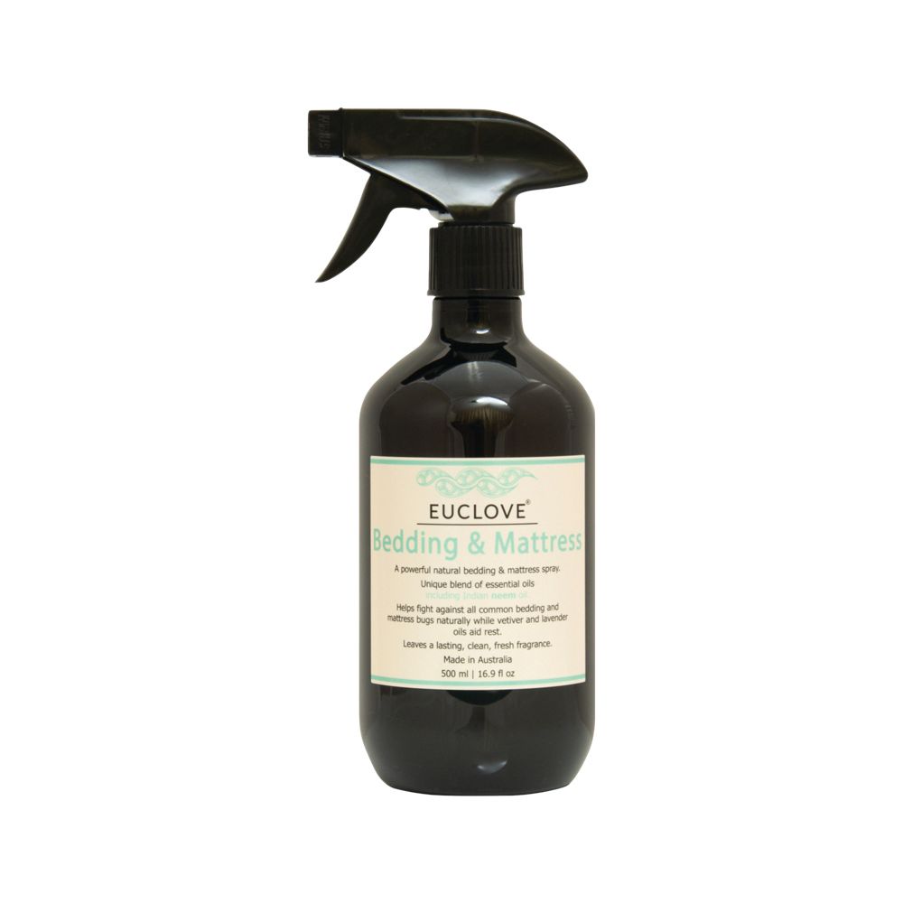 Euclove® Bedding & Mattress spray is a unique, natural way to help keep families safe from bed bugs, mites and lice even as we sleep. We have blended the powerful natural insecticide Indian Neem & Eucalyptus essential oils to help protect from nasty bed bugs, lice and mites, then enhanced the blend with Vetiver and Lavender essential oils that are known to help reduce stress and anxiety so that you can settle in for a good night's sleep.