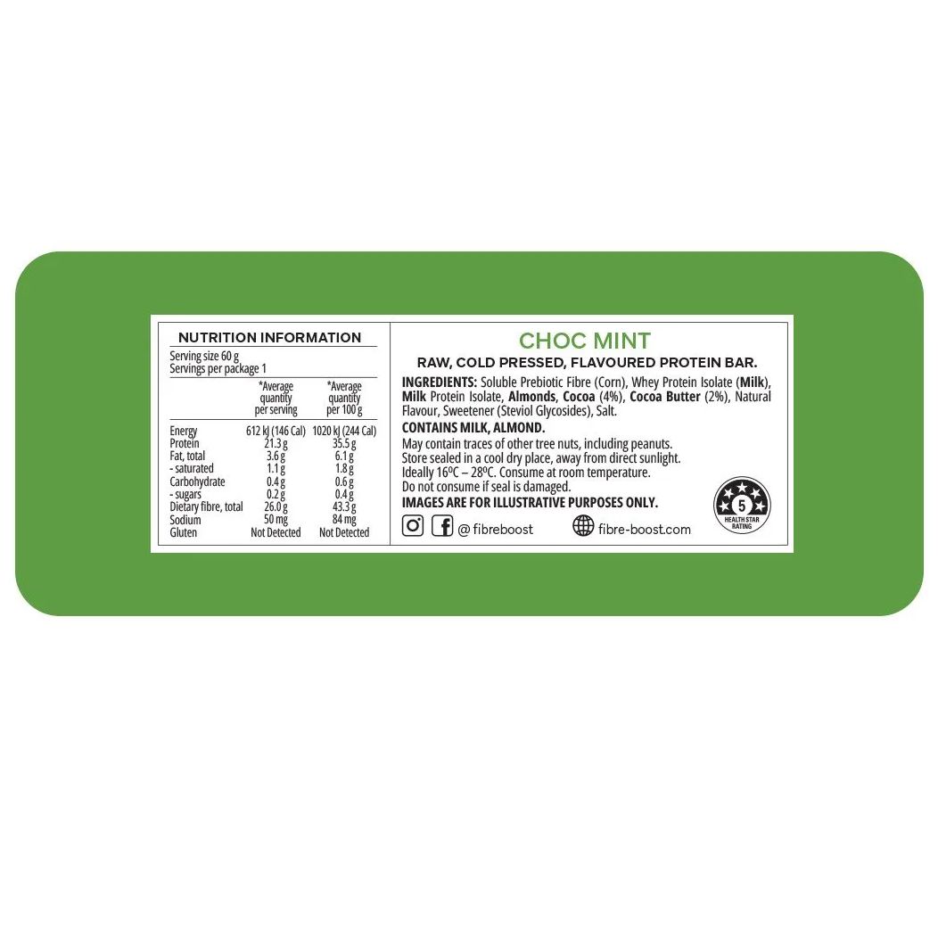 Delight in the refreshing combination of smooth chocolate and cool mint, creating a minty-fresh flavour explosion that invigorates your senses in a guilt-free protein & fibre packed bar.