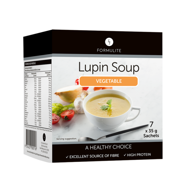 Formulite Lupin Soup Box | Vegetable - Formulite has also included vegetables, herbs and spices blended with lupin flakes to provide a soup that is very high in protein, probiotics, fibre and antioxidants, low in carbs and fats and is gluten and dairy free. Read more
