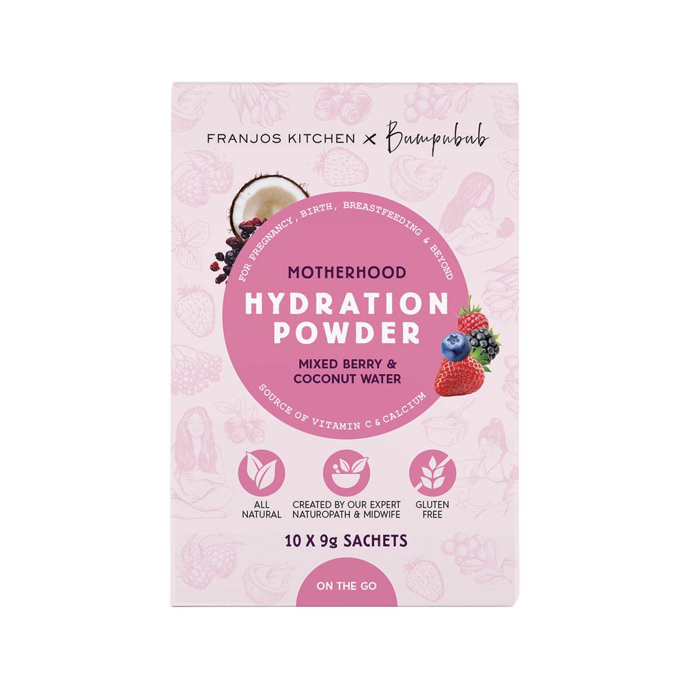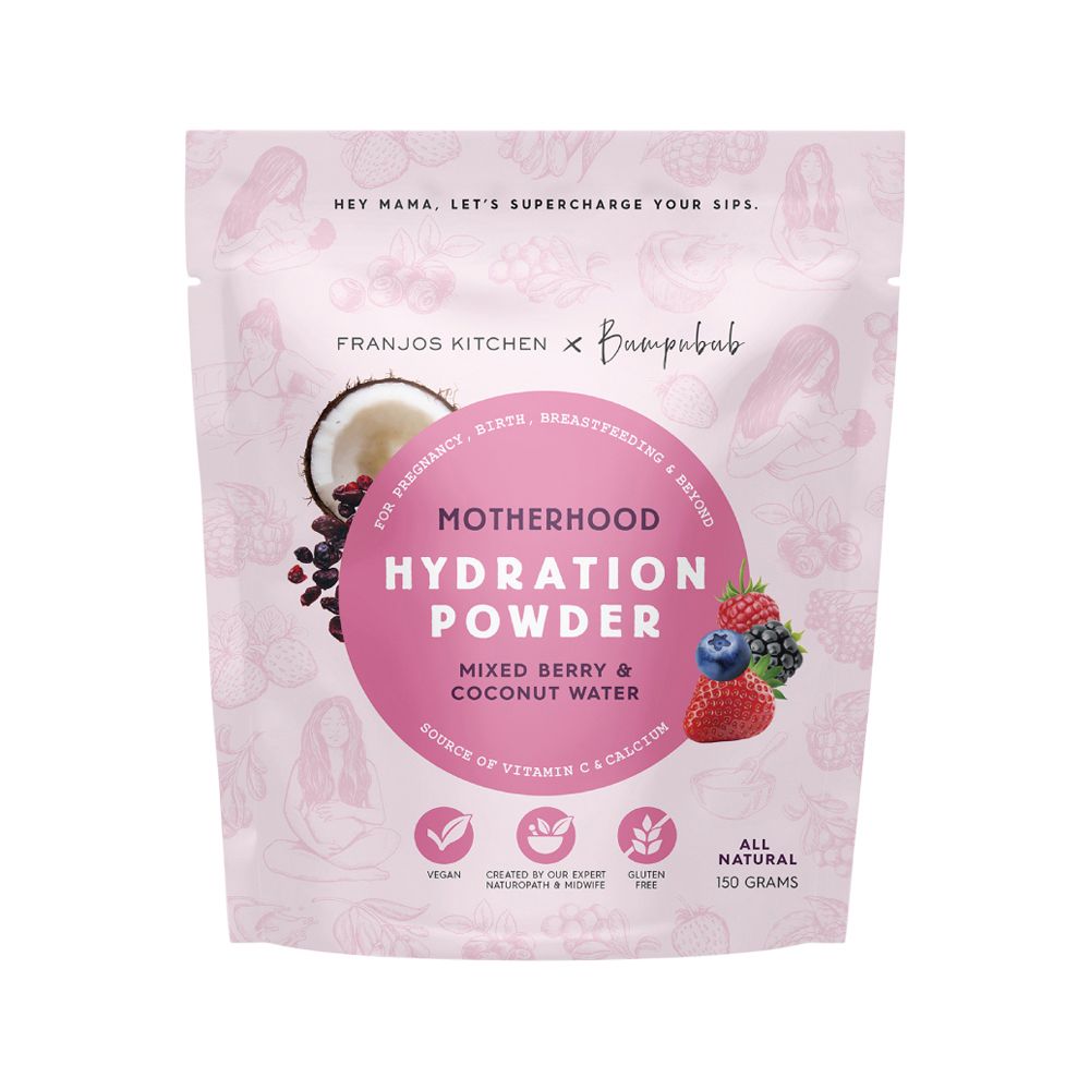 Franjos Motherhood Hydration Powder is a healthy way to hydrate your hardworking body. With the delicious taste of Mixed Berry and hydrating powers of coconut water, it’ll turn your drink bottle into your bestie.