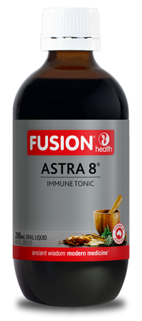 Fusion Astra 8 Immune Tonic liquid contains herbs used to support immune health plus reduce cold & flu frequency in traditional Chinese & Western herbal medicine Read more