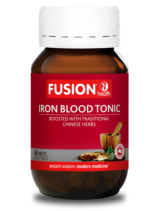Fusion Health Iron Blood Tonic formula features Chinese Blood tonic herbs that nourish and invigorate the Blood to enhance the effects of iron, reduce fatigue, build stamina and strengthen immune defences.