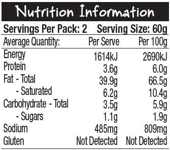 Extra virgin olive oil* (36%), genovese basil* (31%) (genovese basil*, extra virgin olive oil*, salt), cashew nuts*, walnuts*, pine kernels*, garlic*, citric acid (E330). *Certified organic ingredient.
