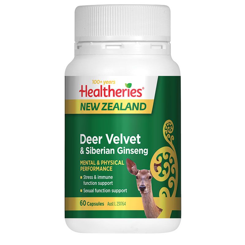 Healtheries Deer Velvet & Siberian Ginseng may assist with mental and physical performance.