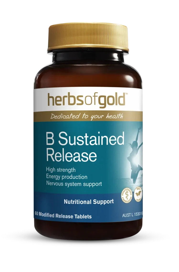 High strength B complex - Herbs of Gold B Sustained Release contains a combination of B vitamins to support energy production and a healthy stress response in the body. Read more