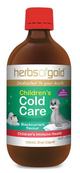 - Herbs of Gold Children’s Cold Care contains Elderberry, traditionally used in Western herbal medicine to relieve symptoms of common colds, including mild upper respiratory tract congestion and cough.