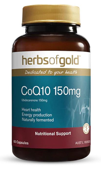 - Herbs of Gold CoQ10 150mg supports energy production and healthy cardiovascular system function.