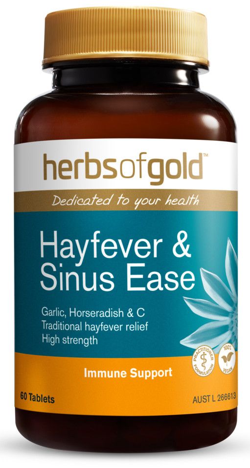 - Herbs of Gold Hayfever & Sinus Ease is formulated with herbs that address the symptoms of hayfever and sinusitis.