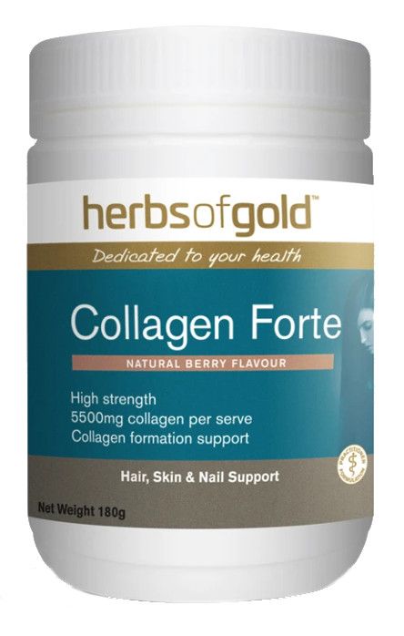 - Herbs of Gold Collagen Forte is available in a berry-flavoured powder naturally sweetened with thaumatin.