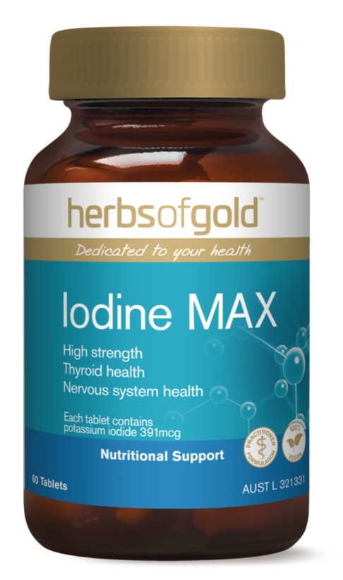 - Herbs of Gold Iodine MAX maintains iodine levels in the body.