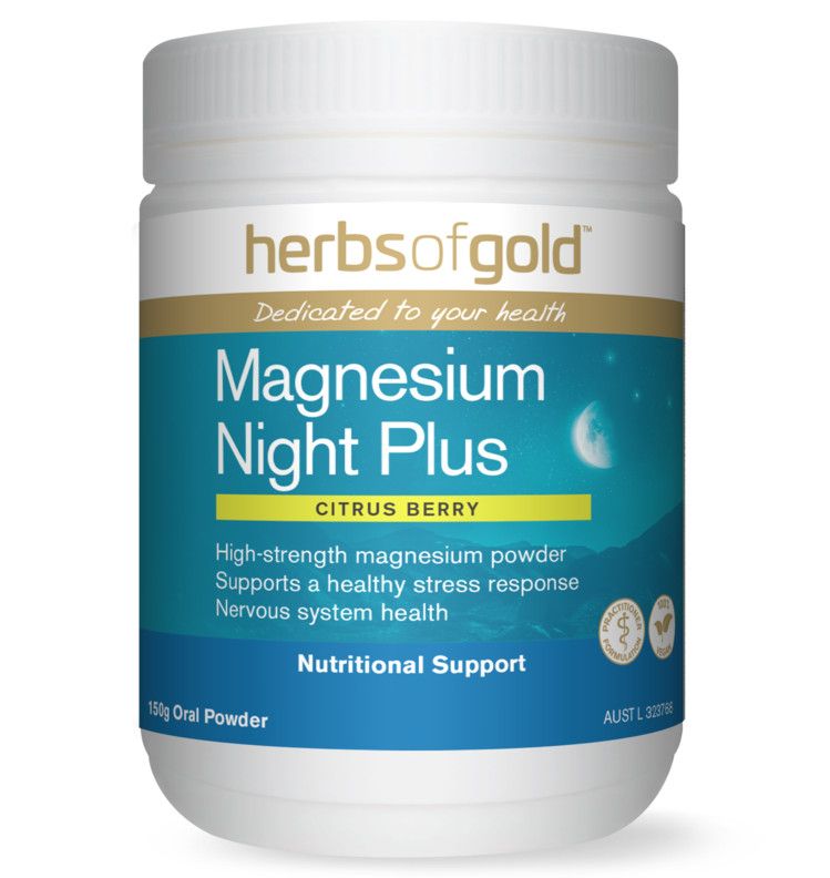 Herbs of Gold Magnesium Night Plus is a delicious citrus berry flavoured powder that contains high-strength magnesium plus Passionflower and California poppy, herbs traditionally used in Western herbal medicine to promote sleep. Read more