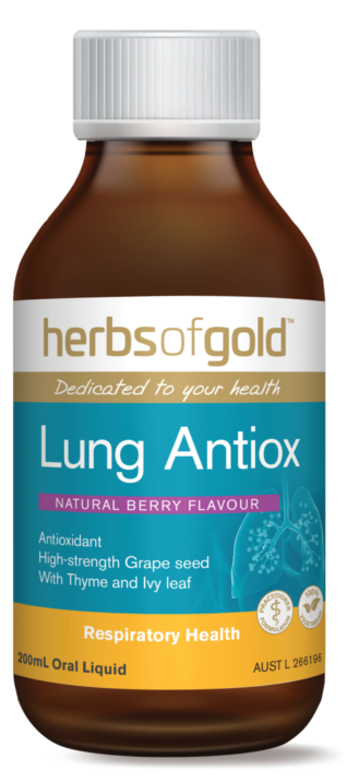 Herbs of Gold Lung Detox is a great-tasting berry-flavoured liquid herbal formula with antioxidant herbs Grape seed and Thyme, traditionally used in Western herbal medicine to support lung health.