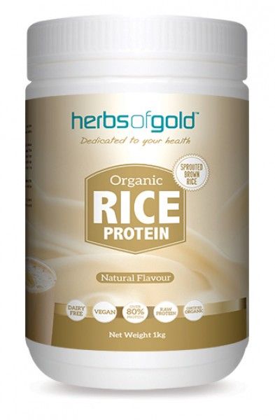 Herbs of Gold Organic raw sprouted wholegrain rice protein is made from organically certified, raw, sprouted wholegrain brown rice yielding 20g of protein per 25g serve. All 9 essential amino acids are present making it a highly valuable long term complete protein source. Read more