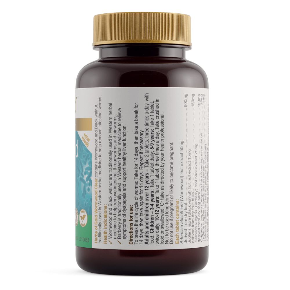- Herbs of Gold Wormword Clear is specifically formulated with potent herbs traditionally used in Western herbal medicine for their vermifuge activity.