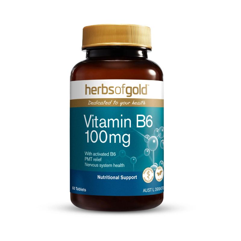 Herbs of Gold Vitamin B6 100mg contains a blend of pyridoxine and pyridoxal 5-phosphate monohydrate (activated B6), in a convenient one-a-day tablet, to help maintain vitamin B6 levels in the body. Read more