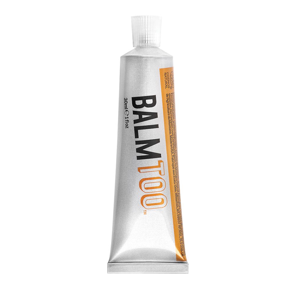 A squeezable, vegan, true balm (no water or hydrogenated 'butters') that melts into skin and absorbs quickly. BALMTOO is not a lotion; just a smidge is all you need for anywhere application: face, fingers, neck, toes! One tube is equal to approximately seven sticks of lip balm.