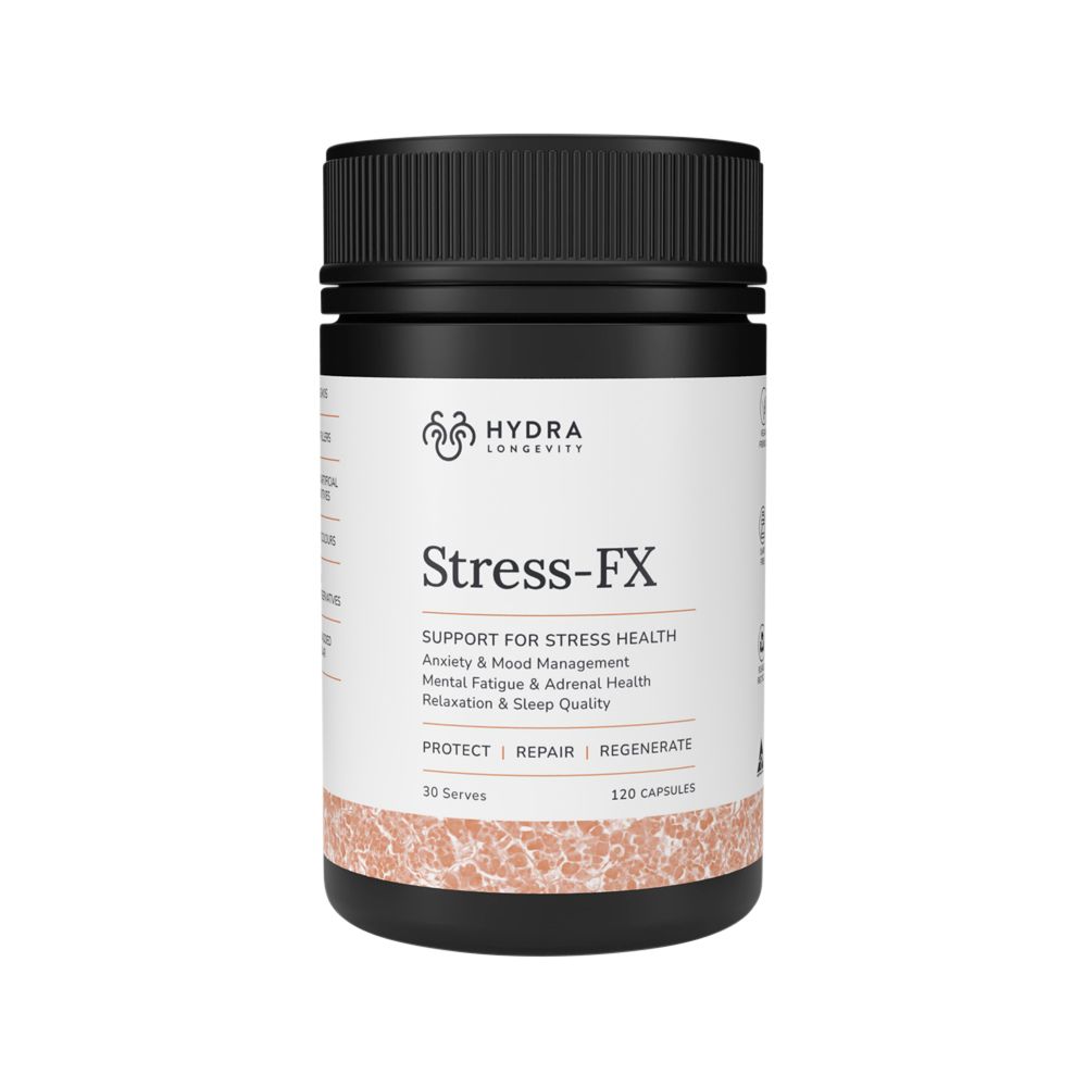 Hydra Longevity Stress-FX is a scientifically advanced formula designed to support stress management and work at a cellular level.