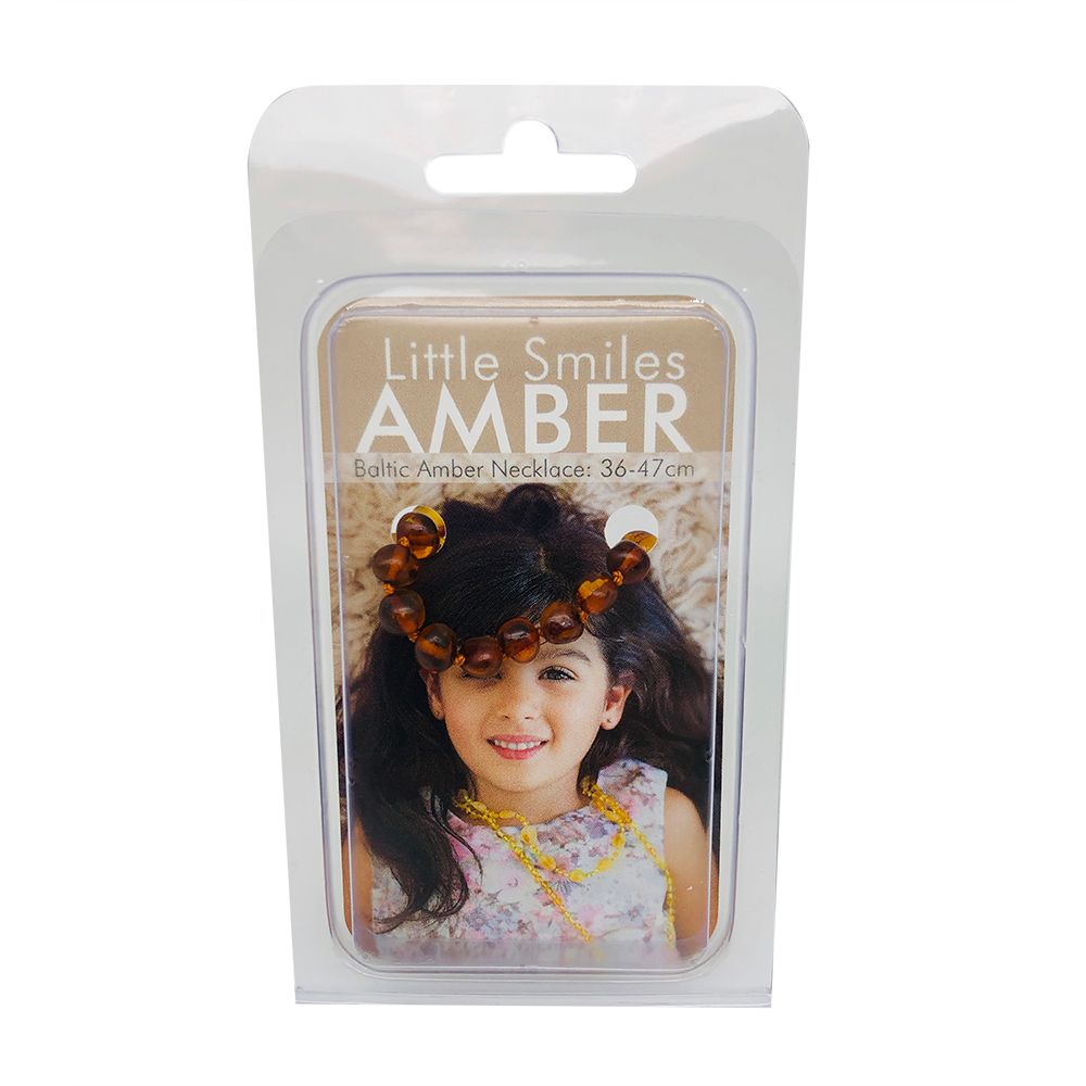 Little Smiles best selling baltic amber jewellery, individually knotted with screw clasp. All amber products supplied with safety and warranty card and durable hang sell packaging.