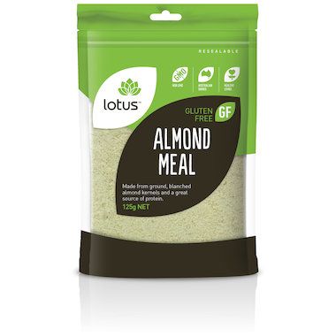 Lotus Almond Meal is packed in Australia from local ingredients and comes in a 125gm re-sealable oxygen barrier bag to preserve freshness.
