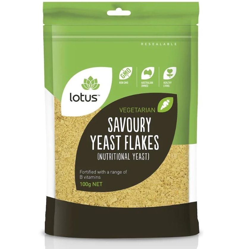 Lotus Savoury Yeast Flakes are fortified with a range of B vitamins. Sometimes called nutritional yeast, it has a strong nutty, cheesy flavour which makes it popular among vegans as a cheese substitute. Simply replace parmesan with savoury yeast flakes for a nutritional boost.