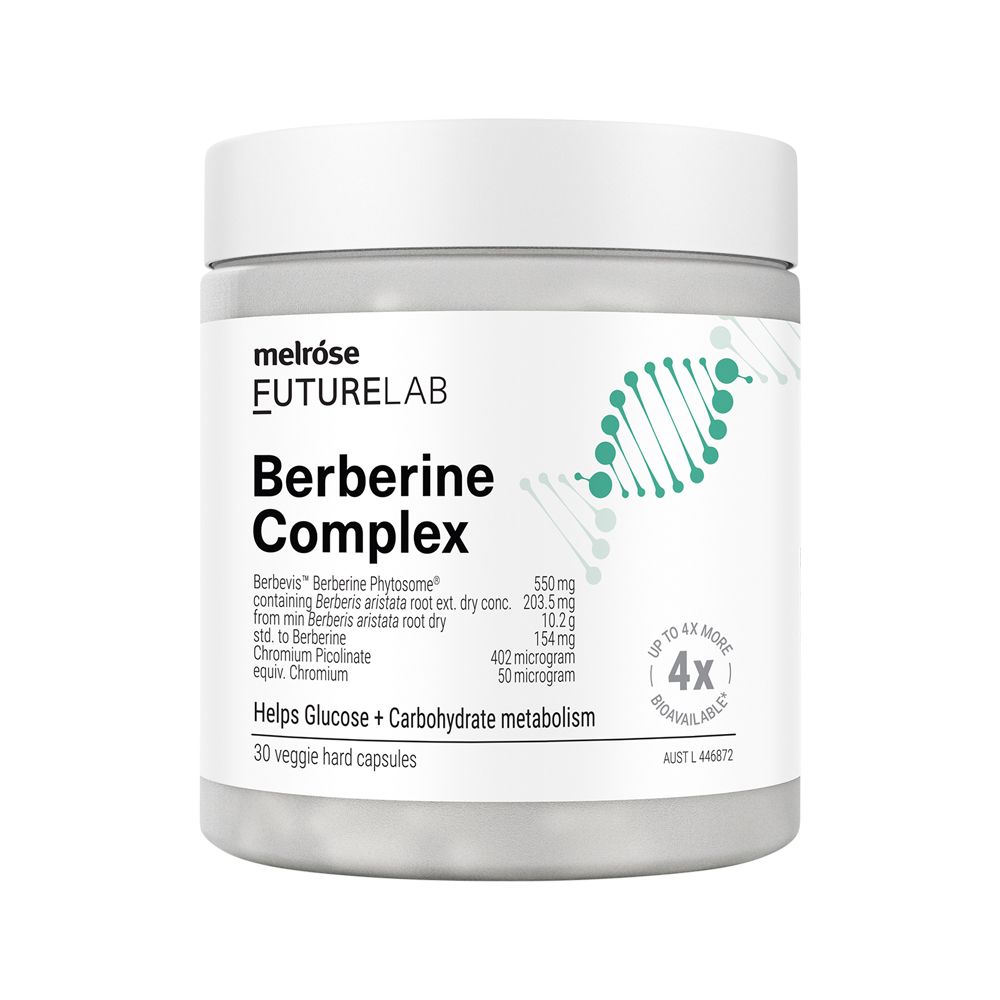 Melrose FutureLab Berberine Complex premium-quality formula designed to support glucose and carbohydrate metabolism. Berberine is a powerful alkaloid present in various plants such as grapes and turmeric. Read more