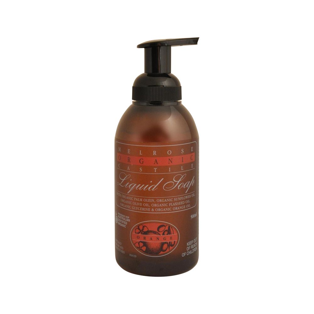 Melrose Organic Castile Soap Orange Pump 500mL is pure and simple. It can be used as an everyday body wash, as a gentle cleanser for hands or even for cleaning laundry. Castile Soap is especially great for dry, itchy, irritated or sensitive skin; it also works well on oily skin and acne by helping balance oil production and preventing the clogging of pores.